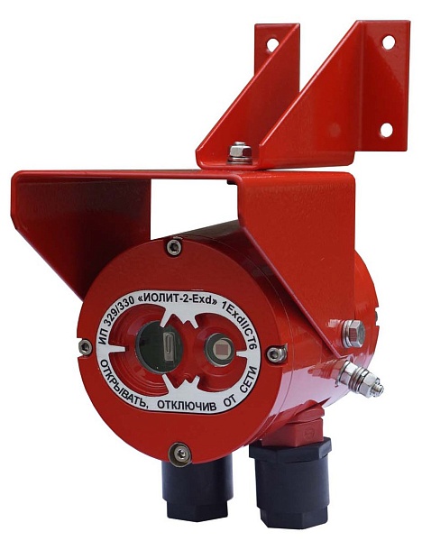 Извещатель пожарный пламени взрывозащищенный, 1ExdIIСT6, ИК+УФ, двух или четырехпроводная схема подключения, RS-485, дальность зоны обнаружения 25 м х 90°, U-пит.5...28 В, I-потр.400 мкА, предустановленные тактики, IP67, t-раб.-55...+55°С, 230х210х120 мм. Два кабельных ввода G1/2.