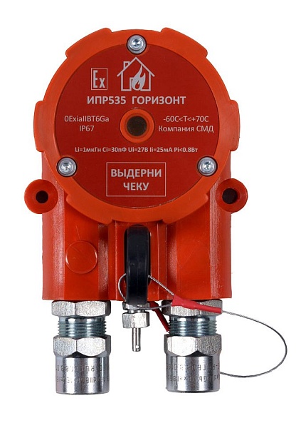 Извещатель ручной, Uпит. 6-27В, потребляемый ток в дежурном режиме не более 10 мкА, Т.окр. Среды -55...+85, 0ExiaIIBT6Ga, IP67