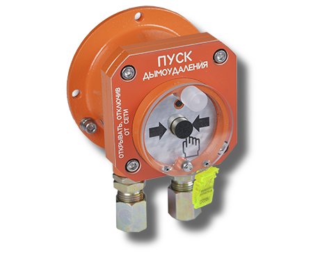 Устройство дистанционного пуска взрывозащищенное 1ExdIICT6 с пломбированием стекла "Пуск дымоудаления"; 2-х проводный; с индикацией режимов работы; U-шс.9…28 В; I-потр.250 мкА; IP68; t-раб.-60…+85°С; 123x106x122 мм; корпус из алюминиевого сплава АК 12 оранжевого цвета; масса 1,0 кг.