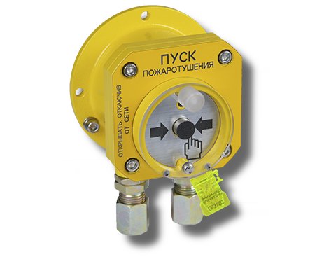 Устройство дистанционного пуска взрывозащищенное РВ ЕхdI / 1ExdIICТ6 с пломбированием стекла "Пуск пожаротушения"; 2-х проводный; с индикацией режимов работы; U-шс.9…28 В; I-потр.250 мкА; IP68; t-раб.-60…+85°С; 123x106x122 мм; корпус из нержавеющей стали 12Х18Н10Т желтого цвета; масса 2,6 кг.