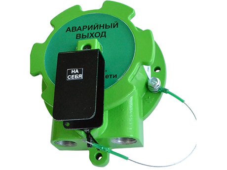 Устройство дистанционного пуска взрывозащищенное, РВ Ехd I Mb / 1Ex db IIC T6 Gb / Ex tb IIIC T85°C Db; "АВАРИЙНЫЙ ВЫХОД"; 2-х проводная схема подключения; U-пит.9...28В, I-деж. 0.05 мА, I-пож.25 мА; IP66/IP68, t-раб.-70...+85°C, 130х90х116 мм. Корпус зеленого цвета. Нержавеющая сталь 12Х18Н10Т. Без кабельных вводов.