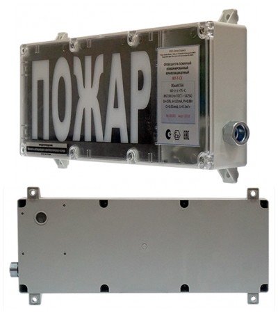 Оповещатель пожарный световой со встроенной сиреной взрывозащищенный 1Ex iа IIC T6 Х с выбором режимов работы; U-пит.12...24В, I-потр.250 мА; У-1, IP67/IP66, t-раб.-60...+75°С, 439х200х66 мм, 1.5кг. В комплекте кабельный ввод
