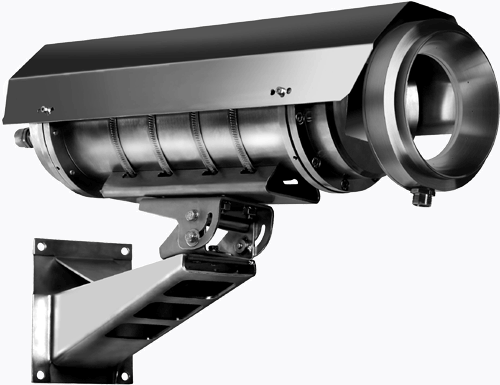 Термокожух взрывозащищенный 1ExdIICT6X с блендой. Внутр. размер Ø105Х240 мм, термореле, непосредственный обогрев стекла и телекамеры, безаварийное включение камеры при отриц. темпер.; устройство защиты от грозовых разрядов и высоковольтных помех. АС 24 В(кожух), 55Вт, 2,25A ; DC 9/12 В/АС 24 В(камера); - 60...+ 50°С, IP 66, кронштейн.