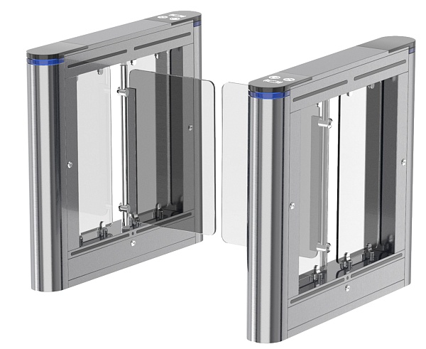 Распашные турникеты предназначены для организации проходных с повышенными требованиями к дизайну и комфортабельности прохода. РСП 400 – достаточно компактная модель с высокой проходимостью, которая подойдет для применения в интенсивных условиях эксплуатации. Турникет РСП 400 – это преграждающая конструкция, имеющая створки, которые закреплены на вертикальных валиках и могут распахиваться как в одну сторону, так и в другую. Распашной турникет оборудован функцией «Антипаника». Эта функция автоматически освобождает проход в экстренных случаях или при сбое электропитания, также она может быть активирована с пульта ДУ.